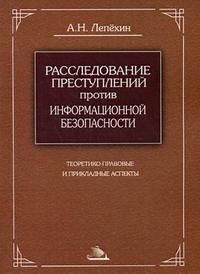 Издетальство Тесей выпустило в свет книгу "Расследование преступлений против информационной безопасности: теоретико-правовые и прикладные аспекты: монография" в 2008 году. Она на 176 страницах, у нее мягкая обложка. Автор издания Лепёхин А.Н.. Книга выпущена в серии - по цене 412.00 рублей. ISBN номер 978-985-463-258-2. Рассматриваются вопросы, касающиеся развития теоретико-правовых взглядов на проблему преступности в сфере информационной безопасности, правовых основ и условий эффективной борьбы с преступлениями против информационной безопасности, криминалистической структуры преступлений против информационной безопасности, особенностей расследования преступлений против информационной безопасности. Предлагаются рекомендации о порядке и тактике различных следственных действий (осмотр места происшествия, обыск, выемка, следственный эксперимент, допрос, назначение и проведение экспертиз). Предназначена для преподавателей, курсантов, студентов и аспирантов юридических ВУЗов, практических работников правоохранительных органов..