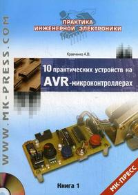 Издетальство МК-Пресс выпустило в свет книгу "10 практических устройств на AVR-микроконтроллерах. Книга 1 (+ CD-ROM)" в 2008 году. Она на 224 страницах, у нее мягкая обложка. Автор издания Кравченко А.В.. Книга выпущена в серии Практика инженерной электроники по цене 198.00 рублей. ISBN номер 978-966-8806-41-4. Данная книга открывает серию сборников с практическими примерами применения микроконтроллеров. В ней рассмотрены десять завершенных устройств на базе микроконтроллеров AVR, которые можно легко собрать в домашних условиях и применять в быту или профессиональной деятельности: генератор световых эффектов; счетчик событий, музыкальный звонок; индикатор уровня звука; повышающий преобразователь, схема управления шаговым двигателем; цифровой термометр и др. Благодаря подробному анализу аппаратной и программной части устройств, книга будет интересна и полезна как начинающим, так и опытным радиолюбителям, желающим изучить методы эффективного применения микроконтроллеров..