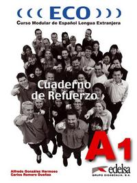 Издетальство Edelsa выпустило в свет книгу "ECO A1. Cuaderno de Refuerzo" в 2003 году. Она на 0 страницах, у нее мягкая обложка. Автор издания A. Gonzalez. Книга выпущена в серии - по цене 414.00 рублей. ISBN номер 978-84-7711-882-4. Se puede utilizar tanto como libro de ejercicios independiente, como complementario al Libro del Alumno. Consta de 8 unidades, cada una en torno a la obtención de un objetivo comunicativo práctico: Unidad 1: Presentarse Unidad 2: Pedir en un bar Unidad 3: Situar objetos Unidad 4: Conocer a alguien Unidad 5: Hablar de una fecha Unidad 6: Describir personas y objetos Unidad 7: Narrar un hecho pasado Unidad 8: Proponer actividades.