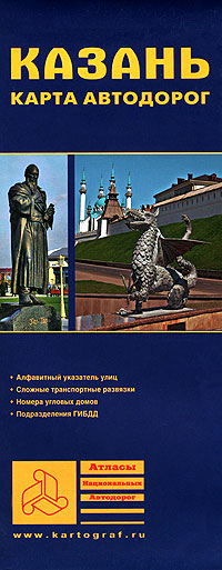 Издетальство Аверс выпустило в свет книгу "Казань. Карта автодорог" в 2011 году. Она на 1 страницах, у нее ?. Автор издания . Книга выпущена в серии Атласы национальных автодорог по цене 60.00 рублей. ISBN номер 978-5-94719-303-9. Карта Казани подготовлена при информационной поддержке Управления ГИБДД ГУВД города Казань, издание содержит: полный алфавитный указатель улиц города, включающий собственные названия всех единиц учета городской территории, непосредственно связанных с дорожным движением. После каждого названия помещен индекс (цифра и буква), указывающий расположение объекта на карте, организация движения на сложных транспортных развязках, номера угловых домов, подразделения ГИБДД, базовый масштаб издания 1:20 000 (в 1 см 200 м)..