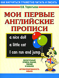 Издетальство АСТ выпустило в свет книгу "Мои первые английские прописи" в 2013 году. Она на 32 страницах, у нее мягкая обложка. Автор издания Терентьева О.В.. Книга выпущена в серии Как научиться грамотно читать и писать по цене 55.00 рублей. ISBN номер 978-5-17-049102-5. Прописи предназначены для дошкольников и учащихся начальной школы, начинающих изучать английский язык. Введение новых букв со знаками транскрипции сопровождается заданиями для закрепления пройденного материала. Упражнения построены по нарастающей сложности. По мере освоения новых букв их количество увеличивается. Это позволит детям не только приобрести навыки письма, но и расширит их словарный запас на первом этапе изучения английского языка..