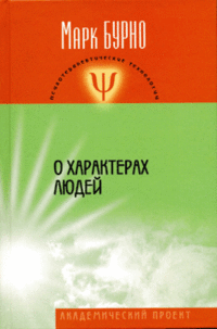 Издетальство Академический проект выпустило в свет книгу "О характерах людей" в 2010 году. Она на 576 страницах, у нее твердый переплет. Автор издания Бурно М.Е.. Книга выпущена в серии Психотерапевтические технологии по цене 535.00 рублей. ISBN номер 978-5-8291-1203-5. Это издание книги, ставшей своеобразным учебником для врачей, психологов, пациентов, душевно здоровых людей с трудными для себя и других характерами, для людей, склонных к тягостным душевным переживаниям, и их близких. Рекомендовано кафедрой психотерапии, медицинской психологии и сексологии Российской медицинской академии последипломного образования и Профессиональной Психотерапевтической Лигой в качестве учебного пособия по психотерапии. Марк Евгеньевич Бурно - доктор медицинских наук, профессор кафедры психотерапии, медицинской психологии, сексологии ГОУ ДПО "Российская медицинская академия последипломного образования Росздрава" (Москва), вице-президент Профессиональной Психотерапевтической Лиги. Основатель отечественной психотерапевтической школы "Терапия творческим самовыражением"..